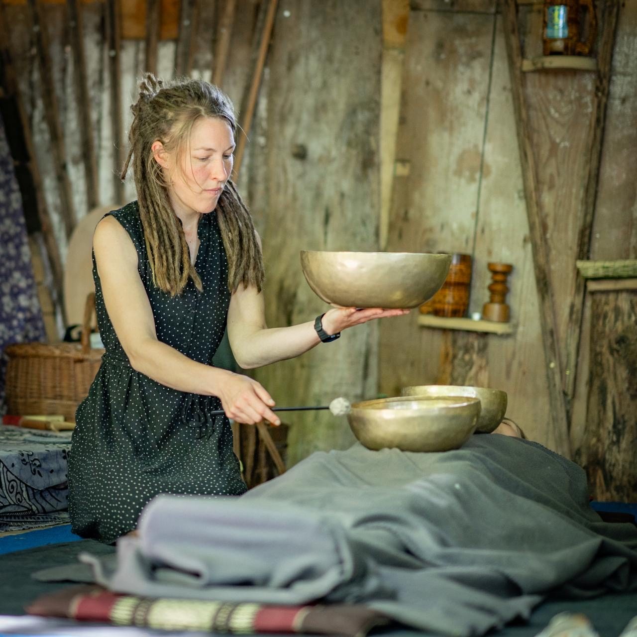Für eine Klangmassage darfst du mich zuhause besuchen.